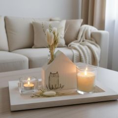 A KisHáz kollekció olyan apró, fából készült házikókat kínál, amelyek egyszerre modern és otthonos kiegészítők. Letisztult formájuk és visszafogott színviláguk miatt bármilyen enteriőrbe könnyen illeszkednek, miközben kézzel készült, egyedi részleteikkel barátságos, személyes hangulatot teremtenek. A ház forma egyszerre jelképezi az otthont és a biztonságot, emlékeztetve arra, hogy a legfontosabb pillanatok és emlékek mindig az otthon melegéhez kötődnek.