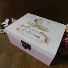 Egyedi emlékdoboz keresztelőre, babalátogatóra