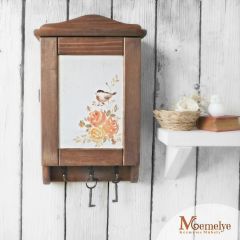 Kézzel festett rózsás-madaras mintával díszített kulcstartó szekrény.